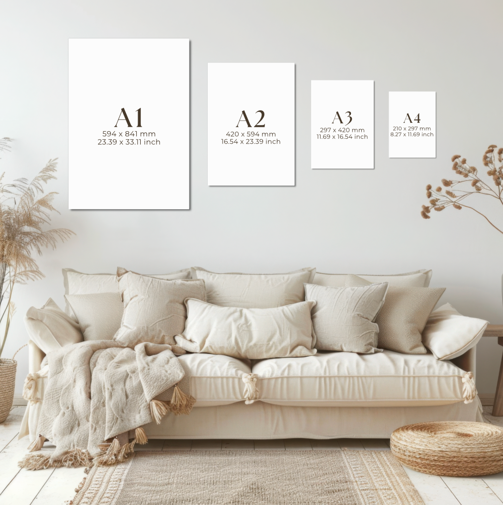 - A2 (42.0 x 59.4 cm) – Perfect for living rooms & offices.